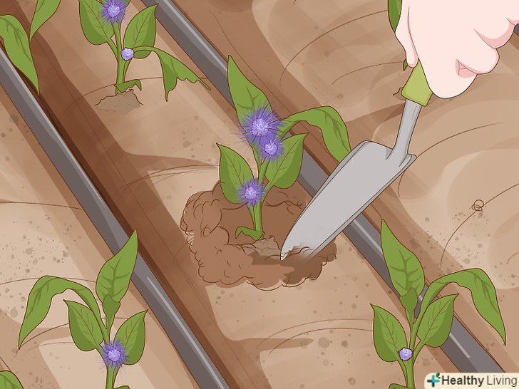 Акуратно обробіть мотикою грунт навколо рослин, щоб позбутися від бур'янів. можна розтрусити землю біля основи рослини, щоб вона стала чистішою. [16]- Коріння тютюну швидко ростуть, і коренева система у цих рослин велика, з сотнями дрібних коренів-ниток, які ростуть поблизу поверхні грунту. Будьте обережні при прополюванні і не занурюйте мотику занадто глибоко, щоб не зачепити коріння.