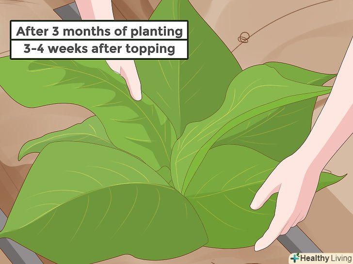 Зріжте верхівкову нирку рослини, коли воно почне цвісти. зрізання верхівки дозволяє верхнім листю досягати більшого розміру і товщини. [14]- Верхівкова нирка - найпомітніша, і зазвичай вона розташовується вгорі стебла. [15] можна відірвати або зрізати цю нирку, бажано до моменту, коли вона розпуститься.