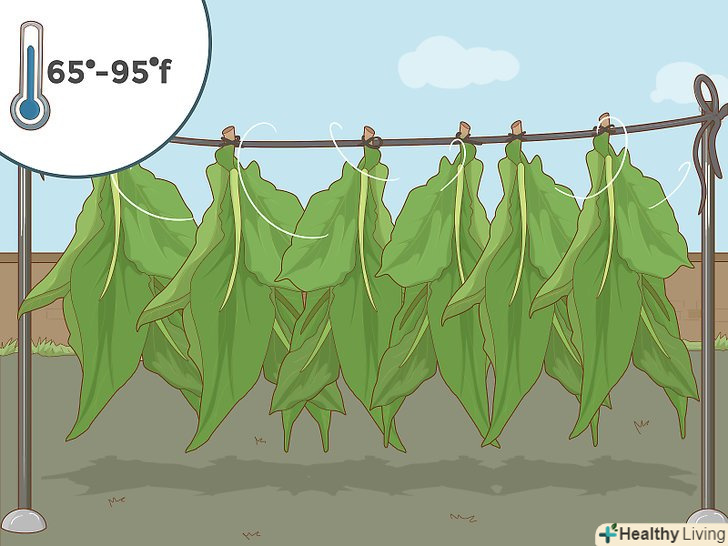 Розвісьте листя в провітрюваному теплому і вологому приміщенні. Підходить температура від 18 до 25 градусів і вологість 65-70%. [18]- Розташуйте стебла на відстані один від одного, щоб всі листя могли висохнути.