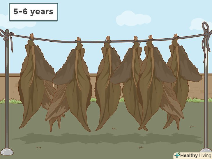 Витримуйте тютюн в схожих на сушку умовах. Тютюн, вироблений в промислових обсягах, зазвичай витримують рік або більше, але домашньому тютюну може знадобитися 5-6 років.- Процес витримки не запуститься, якщо температура і вологість будуть невідповідними. Якщо тютюн занадто сухий, процес витримки не почнеться, а якщо занадто вологий - він почне гнити. На жаль, немає єдиного рецепта правильного підбору температури і вологості, тому вам доведеться дізнаватися все експериментальним шляхом.
