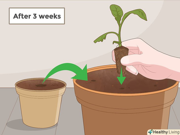 Через три тижні пересадите розсаду у великий ящик. до цього часу розсада буде вже досить великий, якщо ви все робили правильно.- Якщо пересадити рослини у велику ємність, їм буде простіше сформувати міцну кореневу систему.