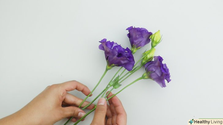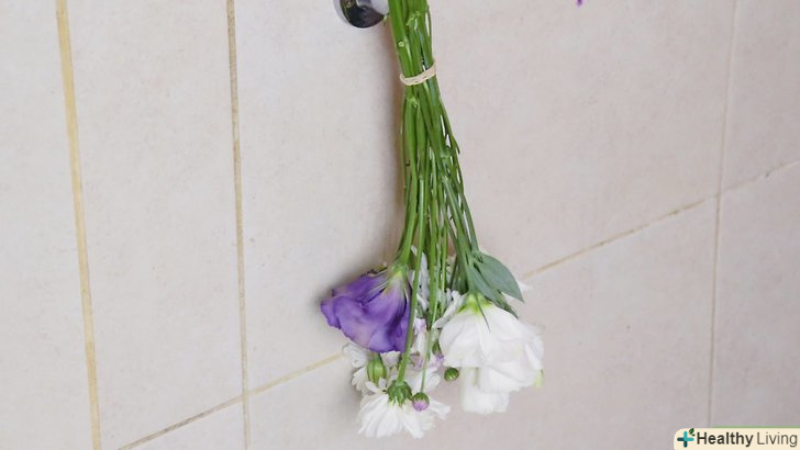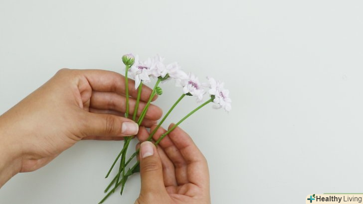 - Перев'яжіть букети гумовою стрічкою біля основи стебел. кілька разів обмотайте стрічкою два-три стебла, потім весь букет, після чого обв'яжіть кілька інших стебел. [7] Висохнувши, стебла зморщаться, але Гумова стрічка все одно буде туго обтягувати їх.