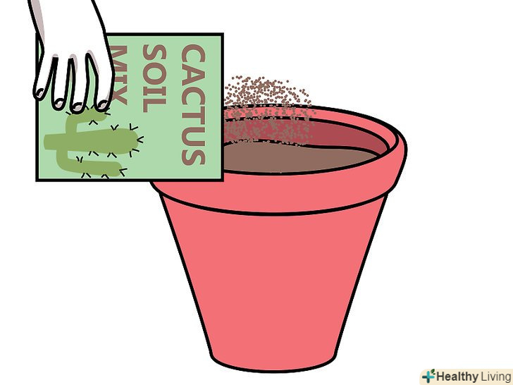 Заповніть горщик грунтом для кактусів. шукайте грунт для кактусів в найближчому господарському або садівничому магазині. Прочитайте склад, щоб переконатися, що він містить рівні частини добрива, садового піску і гравію. Перевірте, щоб всі інгредієнти були придатні для садового застосування. [2]