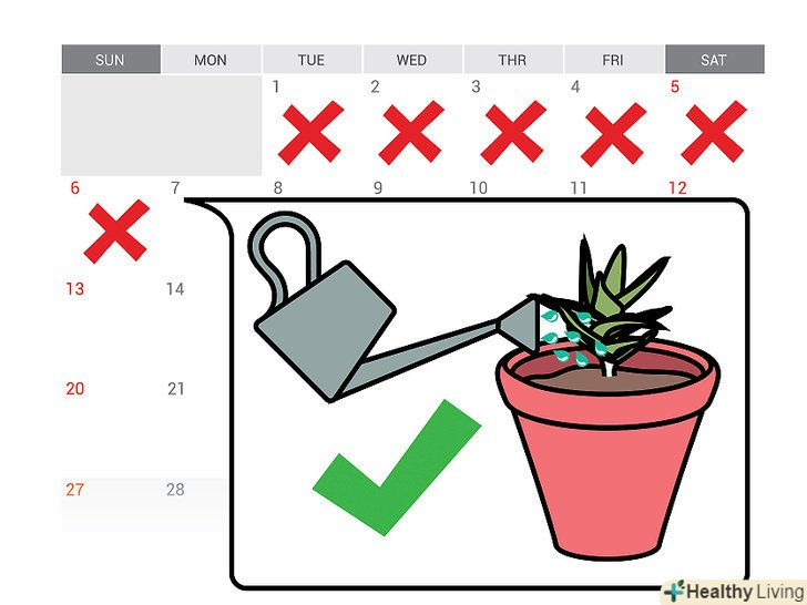 У період зростання поливайте принаймні раз на тиждень. Частота поливу залежить від виду сукулента. Перевіряйте, щоб грунт був вологим постійно протягом весняних і літніх місяців. Дотримуйтесь вказівок по догляду конкретно за вашим видом.- Не допускайте перезволоження, оскільки коріння можуть почати гнити. [6]