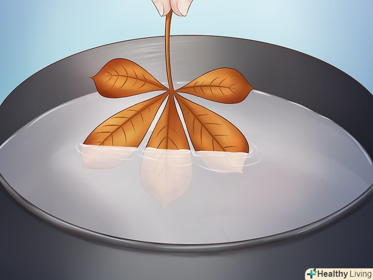 Помістіть гілочки з листям в розчин на три – п'ять днів. гілочки і листя повинні будуть вбирати гліцерин протягом трьох-п'яти днів. Поставте ємність з розчином і гілочками в темне місце.- Якщо ви хочете засушити листя без гілок, помістіть листя в розчин. Слідкуйте за тим, щоб вони залишалися під розчином гліцерину, а не на його поверхні. Налийте розчин в каструлю і помістіть в нього листя. Зверху покладіть тарілку або кришку, щоб листя були повністю занурені в розчин. [5]