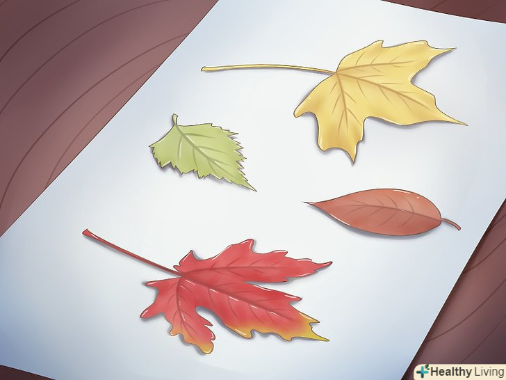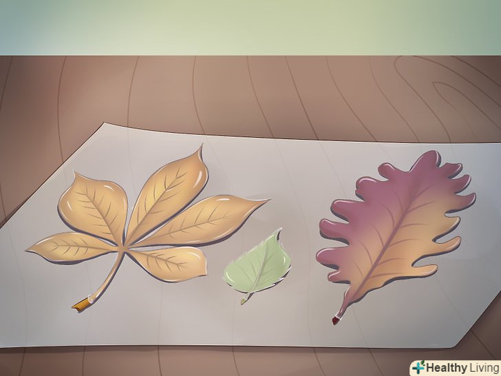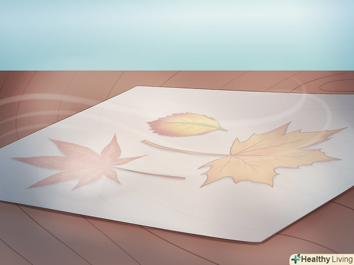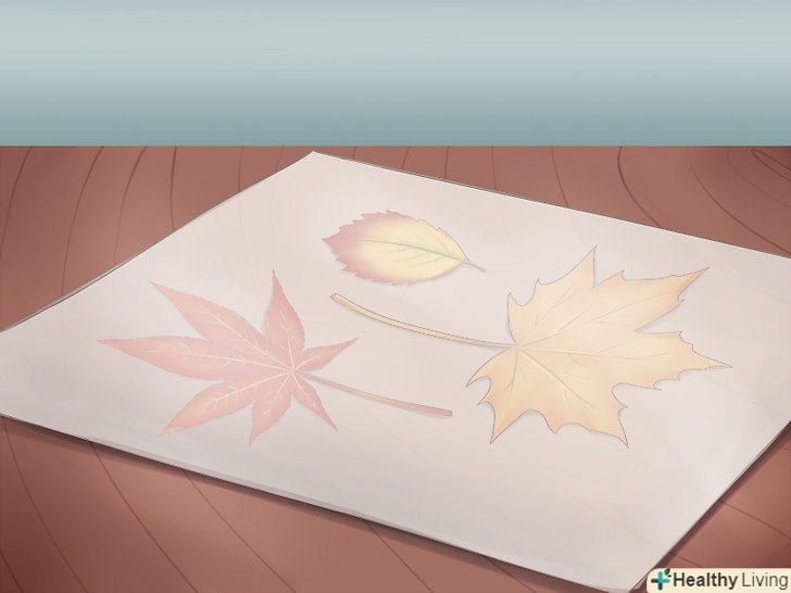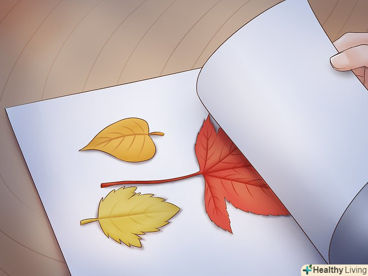 Помістіть листя між двома аркушами паперу. на жаль, використовуючи цей метод, ви не зможете зберегти колір листя. Помістіть листя між двома аркушами щільного паперу для друку. [7]- Використовуйте щільний папір для друку, а не тонку кальку. Інакше листя можуть залишити плями.