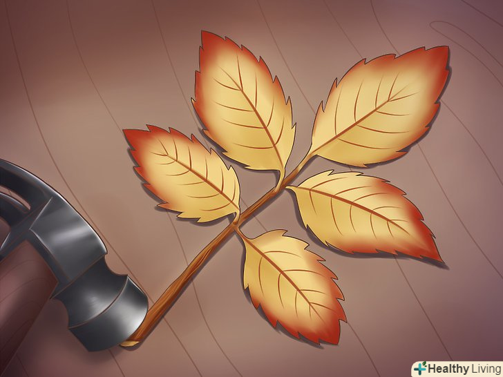 Відріжте кінець кожної гілки. відбийте кінець кожної гілки молотком, щоб було видно свіже дерево. Зробити це слід для того, щоб гілка краще вбирала гліцерин. Інакше він не дійде до листя.- Якщо ви хочете засушити тільки листя, без гілочки, можна пропустити цей крок.