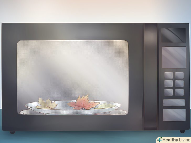 Висушіть листя в мікрохвильовій печі. помістіть листя в мікрохвильову піч і нагрівайте їх протягом 30 секунд. Після цього продовжуйте Підігрів по 5 секунд. [6]- Осіннє листя зазвичай слід нагрівати від 30 до 180 секунд перед тим, як вони стануть остаточно сухими.