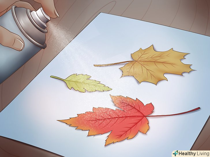 Обробіть листя акриловим спреєм. листя потрібно обробити з двох сторін. Зачекайте, поки листя висохне. Після цього їх можна використовувати для виготовлення підробок.