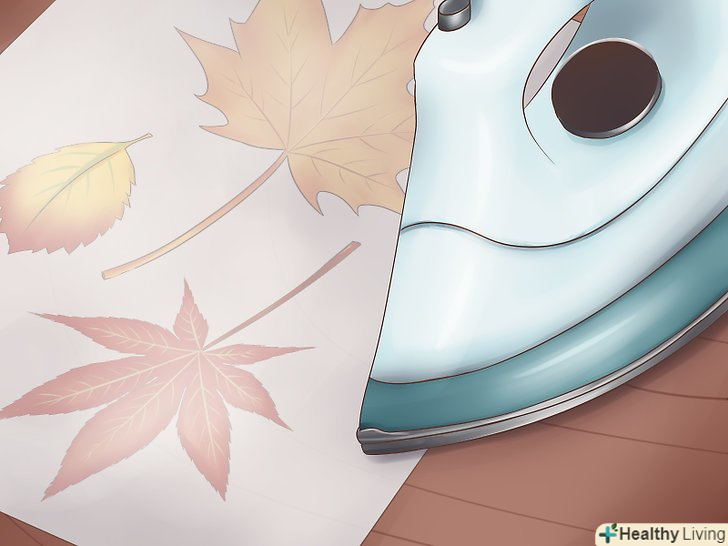 Висушіть листя. помістіть сухе листя між двома паперовими рушниками. Викладіть листя в один шар, щоб між ними залишався вільний простір. Пропрасуйте паперові рушники з кожного боку. Гладьте кожну сторону протягом 3-5 хвилин. [8]- Завчасна просушування листя допоможе їм зберегти свій колір і якість після покриття листя вощеним папером.