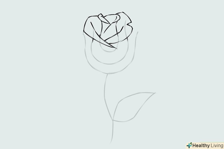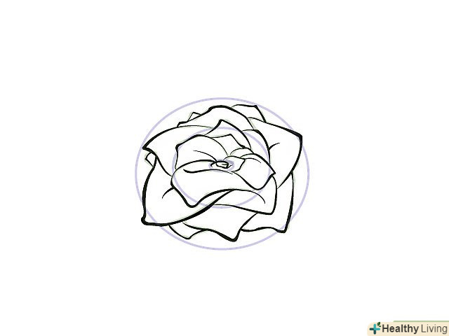 Після нанесення зразкового обриси троянди, почніть промальовувати пелюстки. спочатку використовуйте найменшу криву "U".