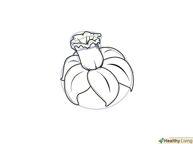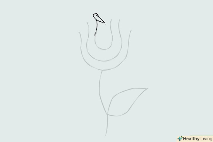 Намалюйте овал, щоб отримати зовнішню межу пелюсток квітки. додайте дві паралельні лінії, які з'єднуються внизу, як показано на малюнку.