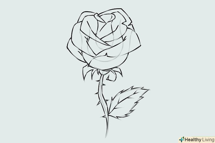 Додайте шипів до стебла. це найкраще робити за допомогою загострених форм. Додайте до листочка троянду, не забудьте, що він має зазубрений край.