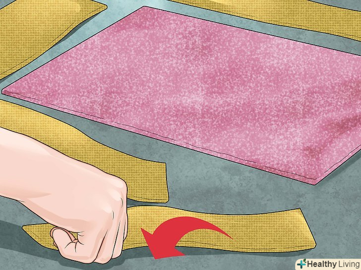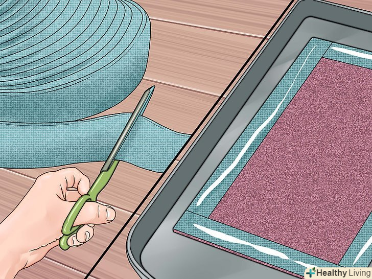 Виріжте шматок килимка для фону, помістивши килим на гофрований картон або іншу поверхню, яку неможливо пошкодити при розрізі лезом. використовуйте для відрізання маленького килимка ніж з лезом, натискайте сильно. Вам, можливо, доведеться двічі провести ножем.- Килим, який використовується для малюнка, потрібно підібрати того ж типу і текстури, як і фоновий килимок.