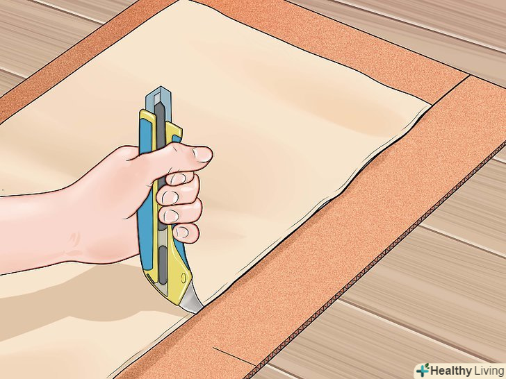 Обертайте килимове покриття для виконання розрізу на гофрованому картоні або іншій поверхні. виріжте форми за допомогою ножа з лезом, притискаючи його із зусиллям. Вам, можливо, доведеться двічі провести ножем.