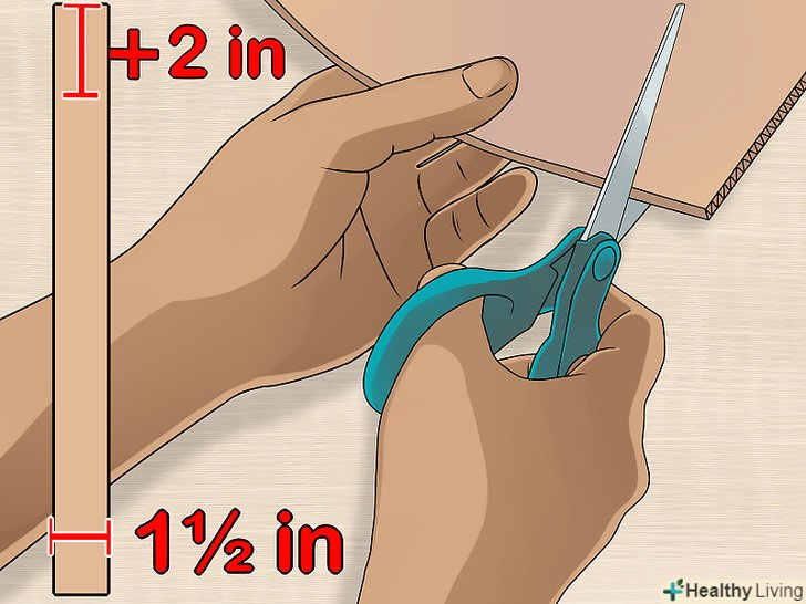 Вирізати смужку гофрованого картону. вона повинна мати ширину близько 4 см, а в довжину бути на 5 см довше обхвату голови людини, для якого призначається Індіанський головний убір.- Гофрований картон, також званий фібровим або ящиковим картоном, має внутрішній гофрований шар, завдяки якому на його зрізі видно гребені або отвори цього шару. При цьому даний картон трохи легше і товщі звичайного картону.