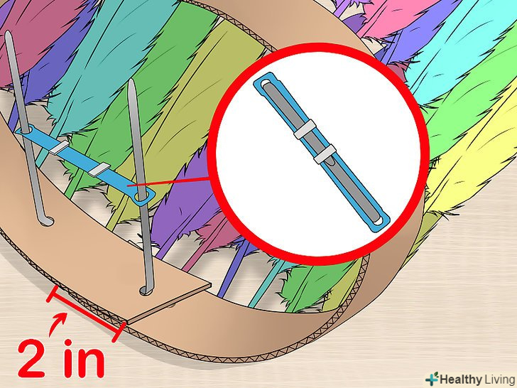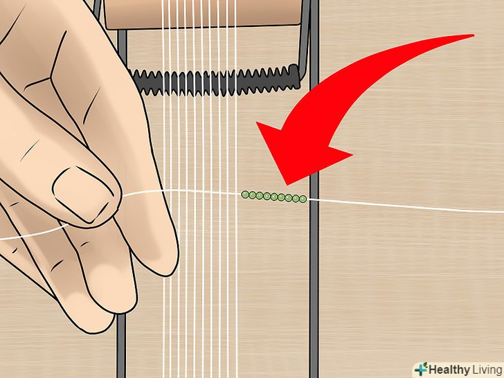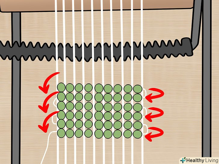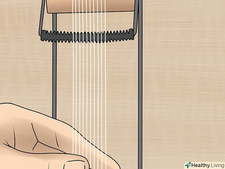 Заправте Ткацький верстат для бісеру. Прив'яжіть нитку до самого лівого зубчику верстата (гребінця), простягніть її до іншого боку верстата і відріжте, залишивши виступати хвостик довжиною 5-8 см.Прив'яжіть цей хвостик до самого лівого зубчику верстата цієї сторони. Повторюйте процедуру до тих пір, поки у вас не буде натягнуто достатньо ниток для втілення в життя задуманого дизайну.