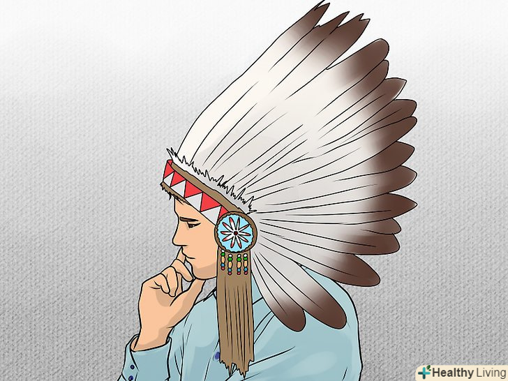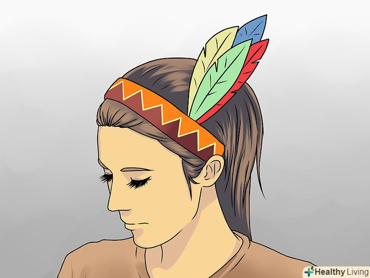 Надіньте наголов'я. при надяганні наголов'я розташовуйте пір'я так, щоб вони знаходилися трохи позаду вуха. Доповніть цей наряд вивченням історії того індіанського племені, чиїми візерунками ви скористалися при створенні оголів'я.- Більшість корінних індіанців Америки вважає образою, якщо хтось із людей іншої раси вбирається в їх костюми. Тому якщо ви перебуваєте на одному з американських континентів, постарайтеся не вбиратися в індіанця публічно. [6]