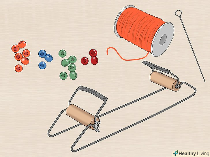 Придбайте все необхідне. вам буде потрібно бісер, міцні нитки для виготовлення бус і бісерна голка відповідного розміру. Також вам буде необхідний Ткацький верстат для бісеру. Якщо у вас вже є Ткацький верстат для бісеру і набір матеріалів для роботи з ним, підберіть собі Бісер побільше, а також одну велику пролодговатую дерев'яну намистину для закінчення своєї роботи. Якщо ви починаєте з нуля, придбайте собі кілька пакетиків бісеру тих кольорів, які ви хочете використовувати. Весь бісер повинен бути однакового розміру, однак ви можете використовувати більший бісер для завершення кінців своєї роботи.- Зробіть Ткацький верстат для бісеру самостійно. Ви можете самі виготовити Ткацький верстат для бісеру, прикріпивши до міцної коробці або до кришки від неї пару плоских гребінців. Візьміть дві однакові плоскі Гребінці або розламати одну гребінець на дві частини. Приклейте Гребінці скотчем або клеєм з двох паралельних сторін коробки таким чином, щоб зубчики залишилися висіти в повітрі.