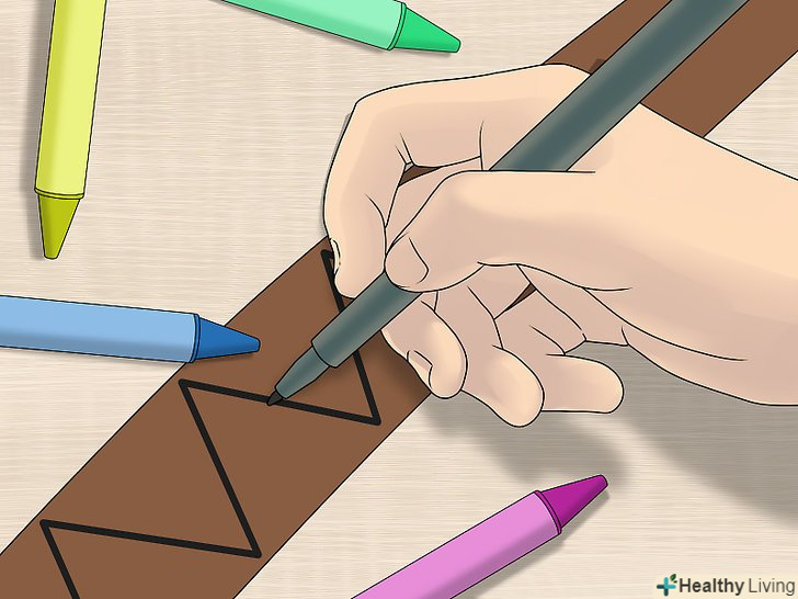 Прикрасьте підготовлену смугу паперу. Візьміть маркери, воскові або звичайні кольорові олівці, фарби і нанесіть на паперову смугу кольорові візерунки в стилі індіанців ваманоа, ленапів або абенакі. Приклади візерунків можна Наті в інтернеті або в книгах про життя лісових індіанських племен.- Пурпурні і білі намистини цінувалися північно-східними індіанськими племенами, такими як вампаноа. [5]