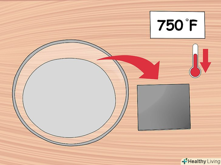 Почніть процес відпалу. замочіть скло у воді з постійною температурою від теплої до гарячої, поки воно не досягне температури, відповідної в'язкості гарту в печі amp; # 951; = 1013 Пуаз. Час замочування буде залежати від розміру отжигаемого шматка скла.- Скла Effetre( Moretti), Bullseye, і Lauscha потрібно замочувати при 504 градусах Цельсія. Боросилікатне скло - при 566 градусах Цельсія, загартоване скло Satake краще замочувати при 477 градусах Цельсія. Дрібний бісер вимагає вимочування всього лише протягом 20 хвилин, великі намистини вимагають годинної витримки, а для великих прес-пап'є може знадобитися витримка протягом 12 годин. Дуже великі скла масою 45 кг і більше можуть зажадати місяців гарту.