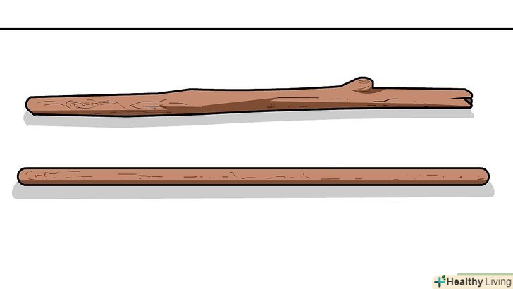 Виберіть флагшток. для саморобного прапора підійде будь-який матеріал. Можна використовувати гілку дерева або старий держак від мітли. Матеріал для флагштока повинен бути міцним і довгим.- Зробіть кишеньку для флагштока. Перед тим як прикріпити прапорець до ручки, потрібно зробити кишеньку, в якому буде міститися флагшток. Для цього розкладіть прапорець на столі і покладіть флагшток уздовж вертикального невеликого краю матеріалу з правого боку.
