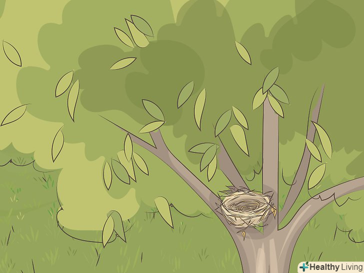 Зробіть Пташине гніздо. багато птахів вважають за краще самі вити гнізда, а не селитися в готові. Якщо ви покладете в природне дупло названі вище матеріали для побудови гнізда, це може виявитися хорошим початком. Якщо ви хочете зробити гніздо іншого типу, наприклад, у формі чаші або майданчика, найкраще виходити зі специфічних звичок тих видів птахів, яких ви хотіли б залучити. Кожен вид віддає перевагу свої певні матеріали.- Розташування гнізда теж важливо. Багато видів птахів ховають свої будинки серед густих гілок, інші вважають за краще більш відкриті гілки, кущі або відкриті ділянки землі. Більше інформації ви знайдете на сайті NestWatch , за допомогою пошукових систем в інтернеті або в визначнику пташиних гнізд.