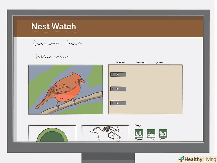 Дізнайтеся про гніздові звички птахів вашої місцевості. знайдіть довідник, присвячений птахам вашого регіону, в бібліотеці або книжковому магазині або пошукайте інформацію про них в Інтернеті. Виберіть один або кілька видів птахів, які ви хотіли б залучити, і з'ясуйте їх гніздові звички, щоб знати, яка форма І тип гнізда їм підійдуть.