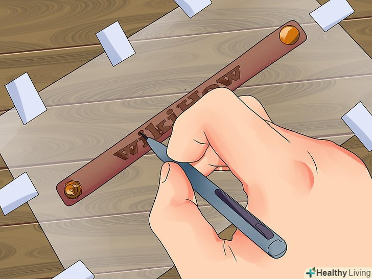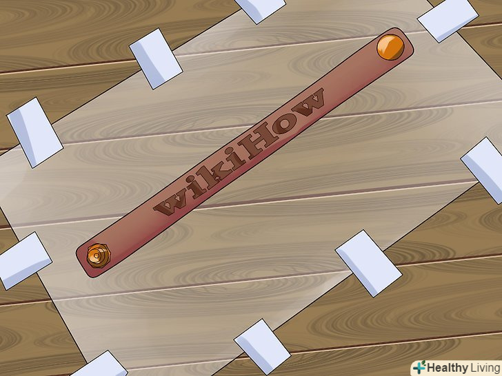 Покладіть браслет на робочу поверхню і прикладіть до нього штамп.- Браслет покладіть лицьовою стороною вгору. Притисніть штамп для тиснення по шкірі, але не перестарайтеся, щоб малюнок не проступав з виворітного боку.