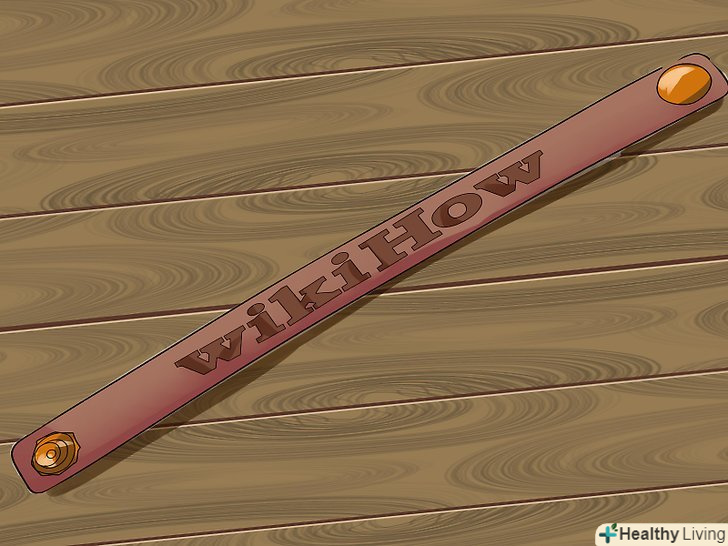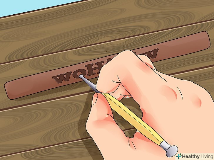 - Цей метод найкраще підходить для гравіювання букв на шкіряному браслеті. За допомогою таких штампів можна вигравірувати імена або короткі цитати і приказки. [2]