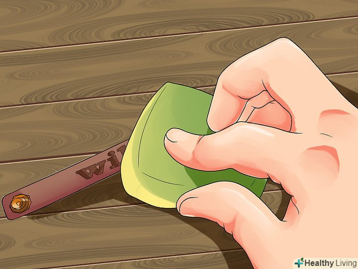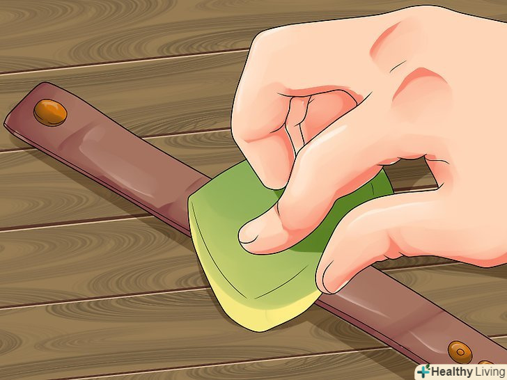 Ретельно зволожите шкіру з обох сторін вологою губкою. шкіра повинна бути вологою, але не мокрою.- Ретельно намочіть губку під проточною водою, потім вичавіть зайву вологу. Тепер зволожите шкіряний браслет.