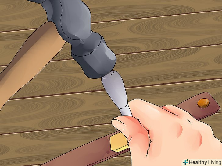 Однією рукою прикладіть штамп до шкіри, а іншою рукою постукуйте по його ручці молотком.- Силою ударяйте по штампу кілька разів.
