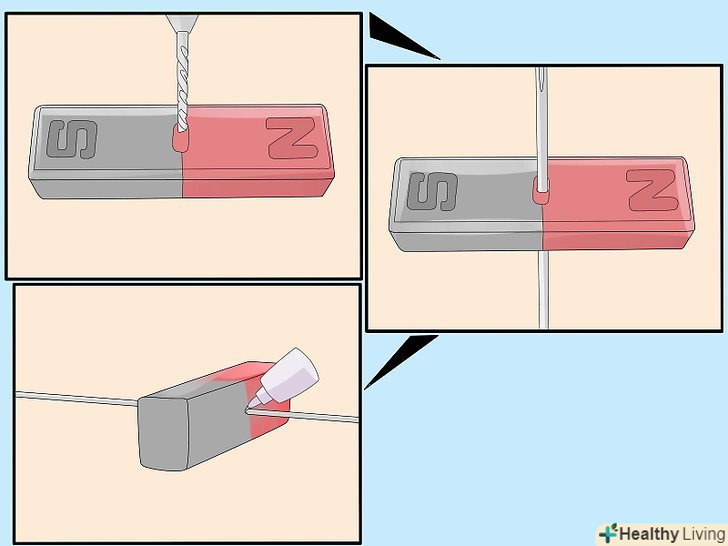 Просвердлите отвір 11 мм в самій середині магніту. протягніть через цей отвір мішкову голку довжиною 10 см і закріпіть її клеєм.