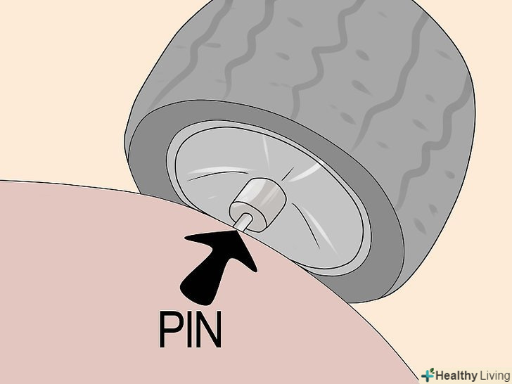 Знайдіть ще колесо більшого розміру і насадите його на штифт або щось подібне, прикріпивши до того ж шматку дерева.