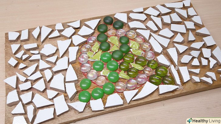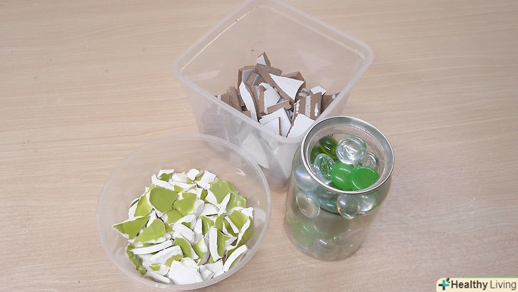 Виберіть матеріал, за допомогою якого ви будете створювати свою мозаїку. дрібні шматочки матеріалу, що використовуються для складання мозаїки, зазвичай називаються мозаїчною плиткою. Вони можуть бути скляними, кам'яними, порцеляновими, з черепашок або з чогось ще, що Ви зумієте знайти. Якщо відповідних матеріалів немає у вас вдома, спробуйте придбати мозаїчну плитку в магазині товарів для рукоділля. [1]- Мозаїку можна доповнювати іншими об'єктами і декораціями, наприклад, невеликими керамічними квітами.