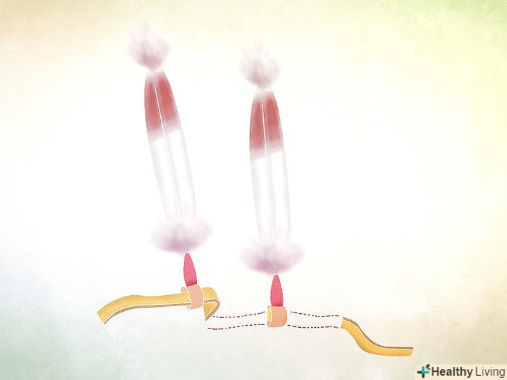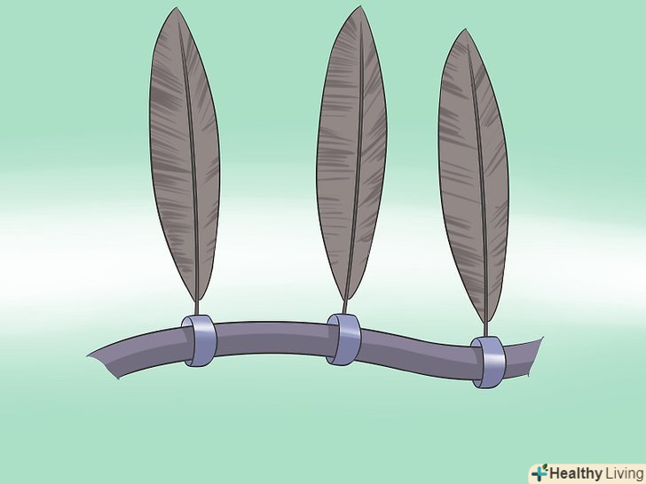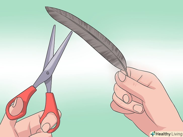 Випряміть пір'я (якщо потрібно). Якщо пір'я погнуті або сильно закручуються, попередньо випрямити їх, щоб головний убір вийшов більш привабливим. Візьміться за перо з двох кінців і поводите їм по гарячій лампі розжарювання. Періодично перевертайте перо. Дайте перу охолонути, поки ви тримаєте його в руках у прямому стані. [3]- В якості альтернативи потримайте перо над парою з чайника або праски або проведіть по всій його довжині нігтем великого пальця. Обидва згаданих методу створюють підвищений ризик поломки пера, тому розумно буде спочатку попрактикуватися на непотрібних вам пір'ї. [4]