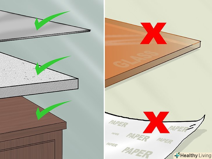 Виберіть поверхню для роботи. якщо ви плануєте склеювати оргскло в майстерні, гаражі або навіть на кухні, переконайтеся, що робоча поверхня сумісна з акриловим клеєм. Це може бути бетон, метал або дерево. Не клейте акрилове скло на скляній або паперовій поверхні.