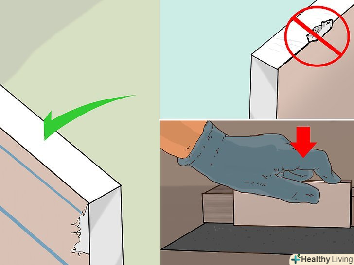Огляньте краю акрилу. межі акрилового скла повинні бути плоскими, без нерівностей і відколів. Акриловий клей не прилипне до виїмок і щілин і не заповнить їх, як звичайний клей. Замість цього він пом'якшить акрил і хімічно скріпить шматки разом. Ось чому так важливо, щоб вони були якомога більш плоскими. [2]- Якщо ви помітили будь-які нерівні ділянки, використовуйте фрезерну машинку (електроінструмент з фасонним різцем) або легку наждачний папір, щоб зробити краї ідеально гладкими і квадратними. Але коли будете шліфувати, не закругляйте краю.