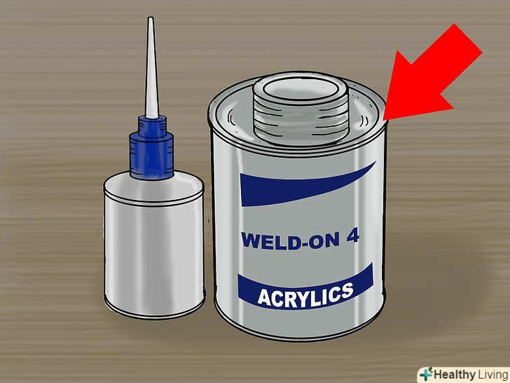 Підготуйте акриловий клей. найпоширенішим клеєм для акрилового скла є клей на основі розчинника, який продається разом з флаконом-аплікатором і голкою. Перед використанням наповніть флакон через шийку приблизно на 75 %.- Після цього акуратно стисніть пляшку, щоб всередину проникло трохи повітря.
