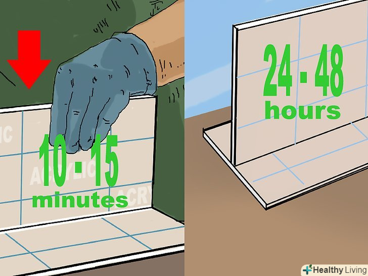 Дайте акриловому клею застигнути. більшість акрилових клеїв твердне через 10-15 хвилин. Протягом цього часу утримуйте акрилові деталі руками або використовуйте для цього затискачі. Клей повністю застигне приблизно через 24-48 годин. [6]- Спочатку акриловий клей буде мутно-білим, але якщо шматки були склеєні правильно, то підсохлий клей стане прозорим.