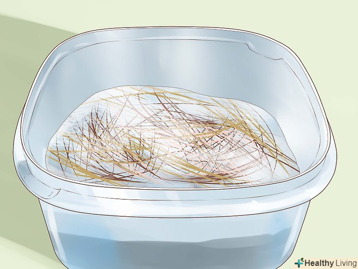 Зберіть волосся з хвоста коня(їй), які хочете використовувати. Якщо у вас різнокольорові волосся з різних коней, можна зробити візерунок. Візьміть довге волосся, близько 3 см в діаметрі. Одягніть гумку з одного боку.