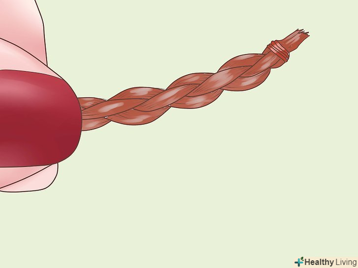 Закріпіть фурнітуру на кінці пов'язаних волосся. нанесіть на неї клей, стисніть волосся маленькими плоскогубцями. Туго прив'яжіть фурнітуру, щоб коса трималася міцно.
