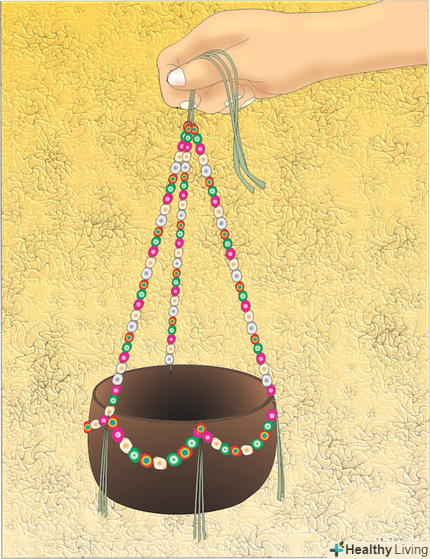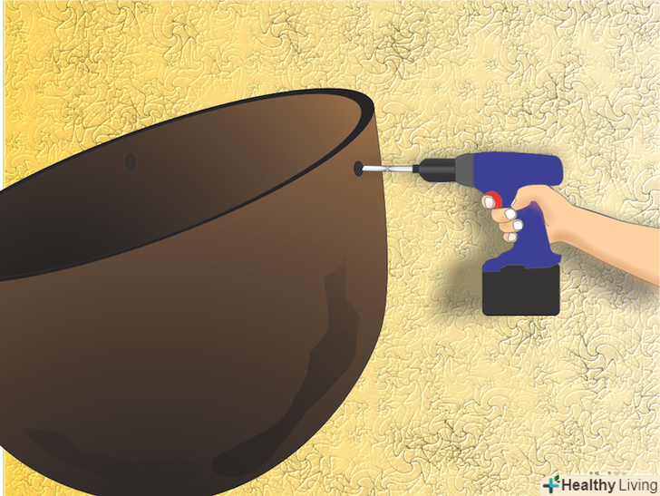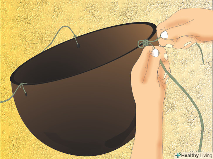 - Ви можете просвердлити 4 дірки або більше, щоб кошик висіла більш рівно. Прив'язавши кожну мотузку до дірки, зробіть бантик.
