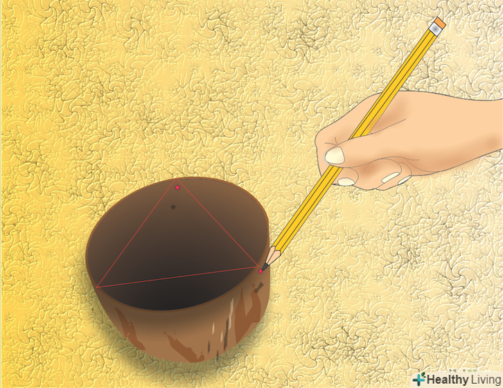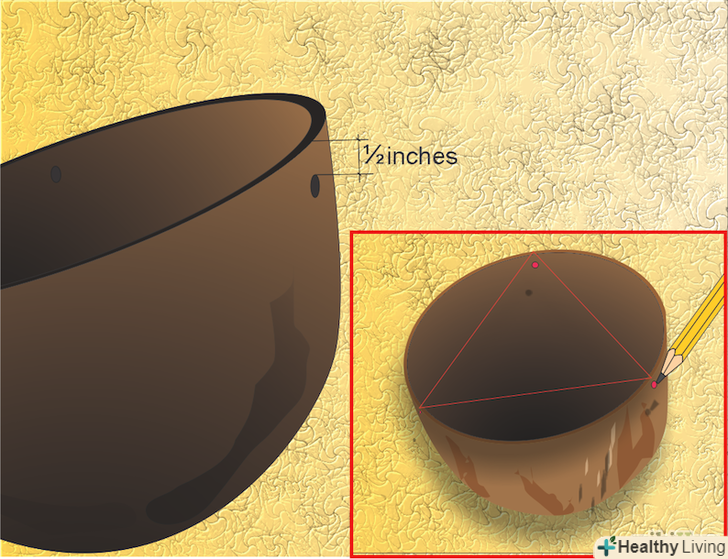 Відзначте місце для 3 дірок, відступивши 1.25 см від краю і 1/3 частина довжини кола збоку. зробіть 3 дірки на рівній відстані один від одного.