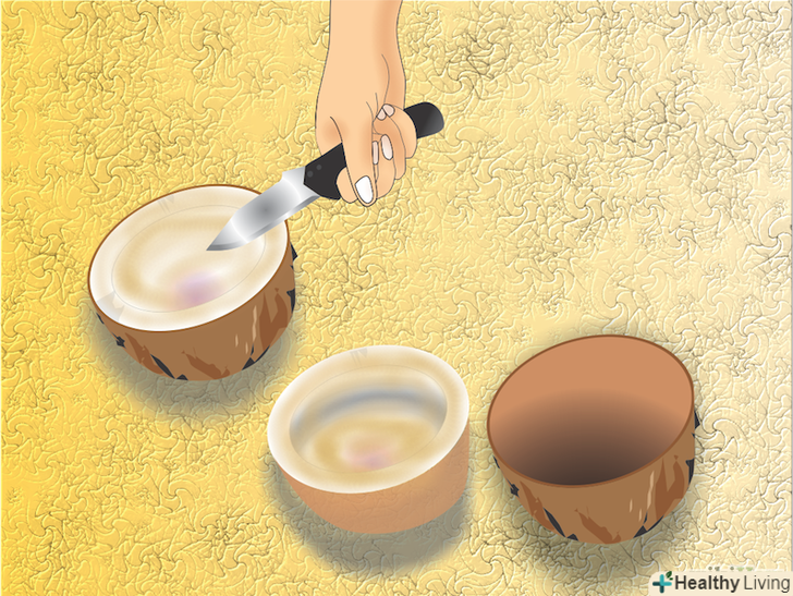 Розріжте кокос на 2 рівних половини, також його можна розбити руками.