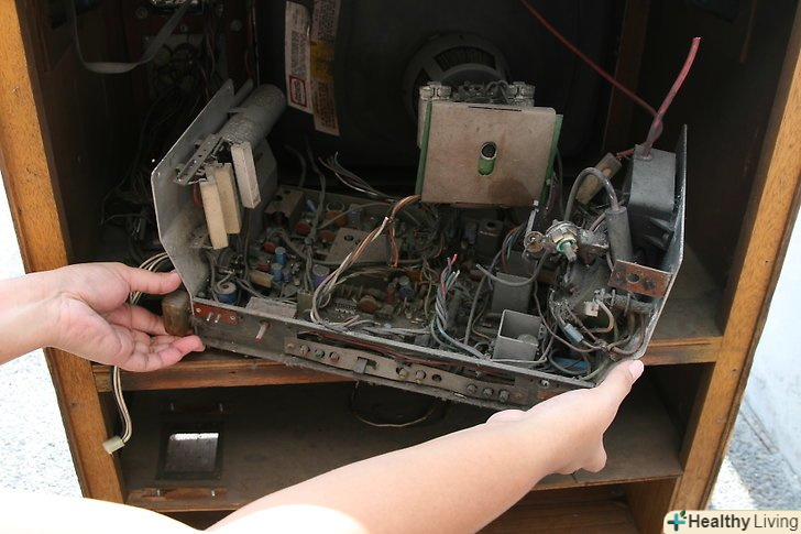 Вийміть всі електричні деталі.- Слідкуйте за тим, щоб не розбити передавальну трубку. Старі моделі можуть таїтиСерйозну небезпеку . Уважно ознайомтеся з розділом попередження.