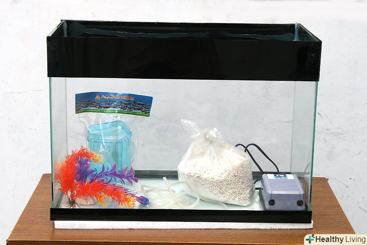 Виконайте збірку акваріума всередині корпусу. закріпіть компресор, фільтр і шланги, потім встановіть сам акваріум. Вода в акваріумі може бути прісна або солона.- Перед запуском рибок наберіть в акваріум воду і перевірте, щоб все працювало. Якщо вам не чужа гуманність і ви хочете, щоб ваші рибки прожили довше однієї-двох тижнів,Обов'язково виконайте цю умову.