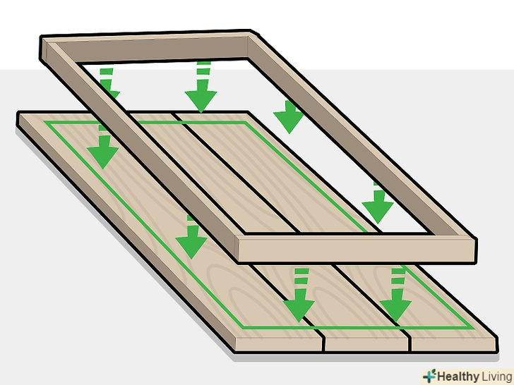 Приклейте опорну рамку до стільниці і затисніть її лещатами. встановіть деталі опорної рамки по раніше намальованим лініях. У вас буде дві довгі деталі по краях уздовж столу і дві короткі деталі поперек нього (і всередині довгих деталей). Покрийте внутрішню сторону деталей рівномірним шаром столярного клею, щоб прикріпити їх до стільниці. Зафіксуйте деталі лещатами на ніч, щоб вони не змістилися. [6]- Також можна надійно прикріпити ці деталі до стільниці за допомогою саморізів. В цьому випадку скористайтеся верстатом для глибокого свердління, щоб попередньо створити наметочние Отвори під саморізи.