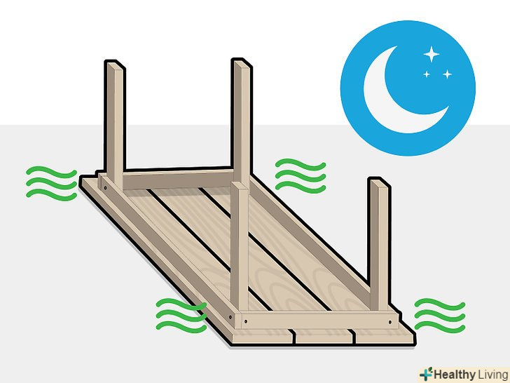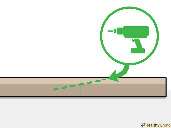 Просвердлите в дошках стільниці косі наметочние Отвори під саморізи для з'єднання краю зовнішньої дошки стільниці з краєм наступної (внутрішньої) дошки. наявність наметочних отворів не дозволить деревині розтріскатися, коли ви будете вкручувати в неї саморізи. Щоб зробити наметочние отвори, спочатку виміряйте довжину стільниці. Поставте мітки для отворів приблизно через кожні 18 см. Вам буде потрібно досить довге Свердло по дереву (довжиною близько 7,5 см і трохи меншого діаметру, ніж саморізи, які ви будете використовувати). З його допомогою просвердлите косі наметочние отвори від краю однієї дошки в край іншої (від зовнішньої дошки до внутрішньої) через кожні 18 см. [4]- Щоб полегшити собі роботу, можна використовувати спеціальний верстат для глибокого свердління. Просто налаштуйте на ньому глибину свердління і просвердлите ідеальні наметочние Отвори під певним кутом до поверхні деревини. Такий верстат знижує ризик того, що ви просвердлите деревину наскрізь.