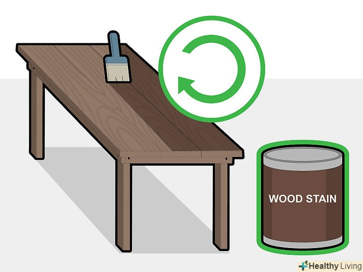 Коли перший шар морилки підсохне, нанесіть другий шар. Дайте першому шару морилки висохнути протягом ночі, перш ніж фарбувати деревину ще раз. Цілком ймовірно, перший шар морилки буде виглядати тьмяно і нерівномірно. Покрийте стіл ще одним шаром морилки точно так же, як робили це раніше, потім знову дайте йому висохнути. Коли ви знову повернетеся до столу, він повинен бути вже готовий. [13]- Перш ніж залишати стіл сушитися, періть з нього надлишки морилки. Це дозволить домогтися однорідного ефекту Тонування без занадто темних плям.